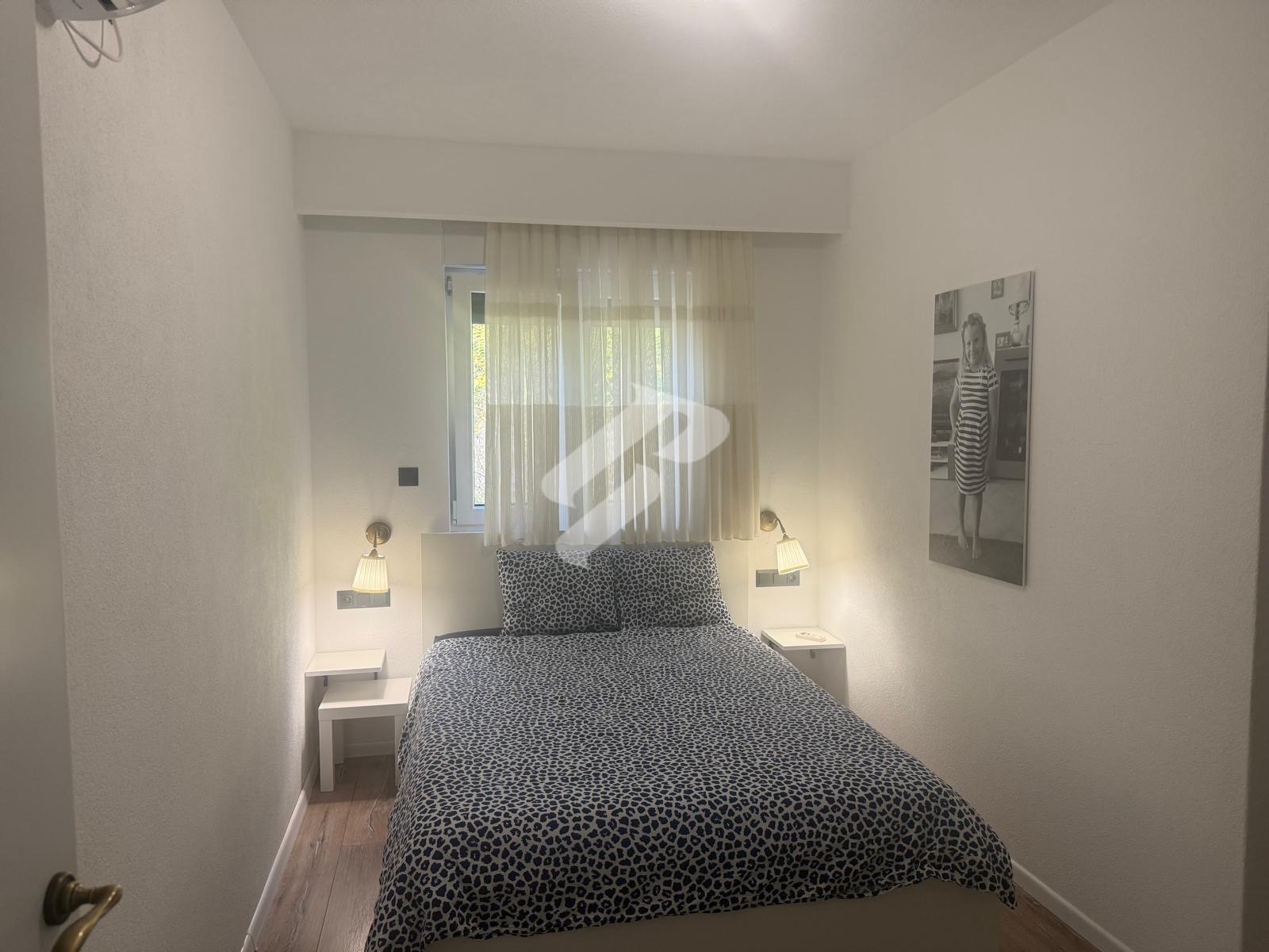 Über eine Innentreppe gelangt man in das Obergeschoss, wo sich drei Schlafzimmer, ein Badezimmer und der Zugang zu einer Terrasse befinden. Die beiden oberen Schlafzimmer verfügen über französische Balkone, und jedes Zimmer ist mit einer eigenen Klimaanlage ausgestattet, sodass stets eine angenehme Temperatur gewährleistet ist.
