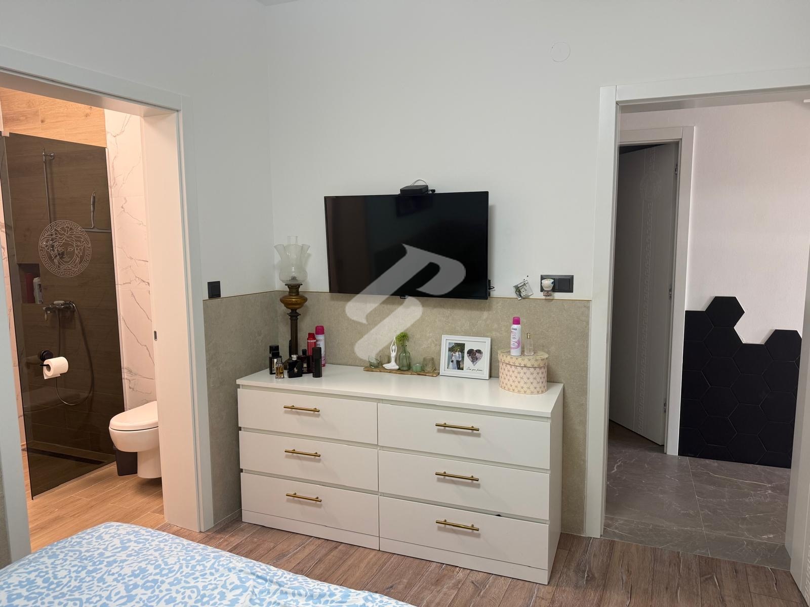 Das Haus besteht aus einem Erdgeschoss und einem Obergeschoss. Im Erdgeschoss befindet sich ein großzügiges und helles Wohnzimmer, das mit der Küche im Open-Space-Konzept verbunden ist, wodurch ein Gefühl von Weite und Wärme entsteht und der Raum ideal für Familientreffen ist. Auf derselben Etage befinden sich außerdem ein Schlafzimmer mit eigenem Bad, ein zusätzliches separates WC sowie ein Ankleideraum, was zusätzlichen Komfort und Praktikabilität bietet.