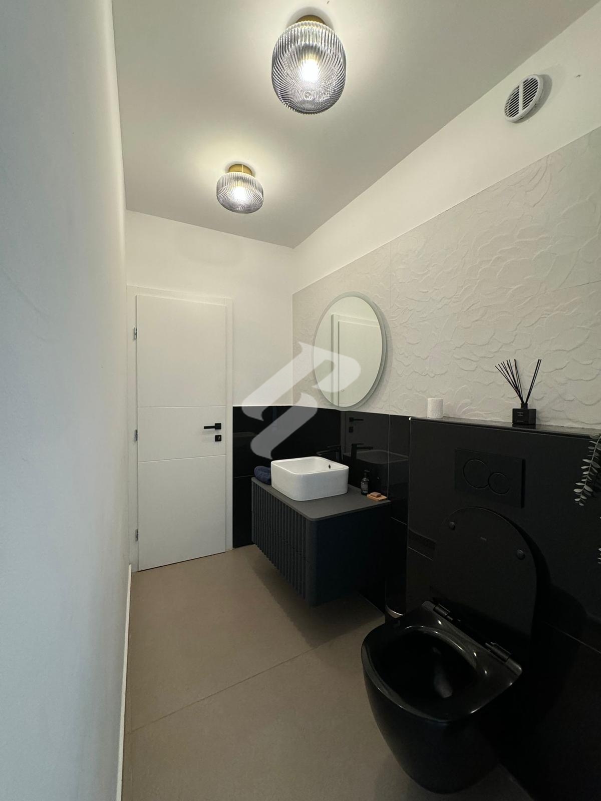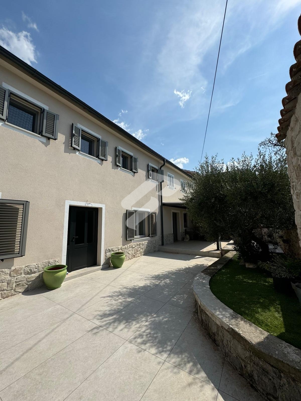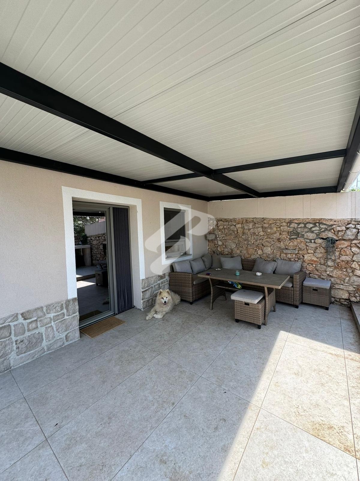 Das Erdgeschoss ist als angenehmer Wohnbereich gestaltet und besteht aus einer Küche mit Essbereich und Wohnzimmer, einem Hauswirtschaftsraum, einem Gäste-WC sowie einer wunderschönen traditionellen Konoba mit Innenkamin, perfekt für gesellige Stunden das ganze Jahr über.