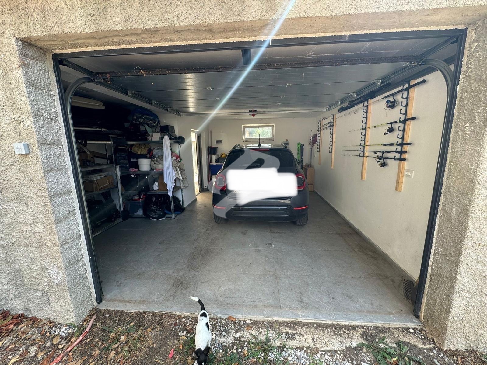 Zur Immobilie gehören eine Garage für ein Fahrzeug, ein eigener Teil des Hofes sowie ein offener Meerblick.