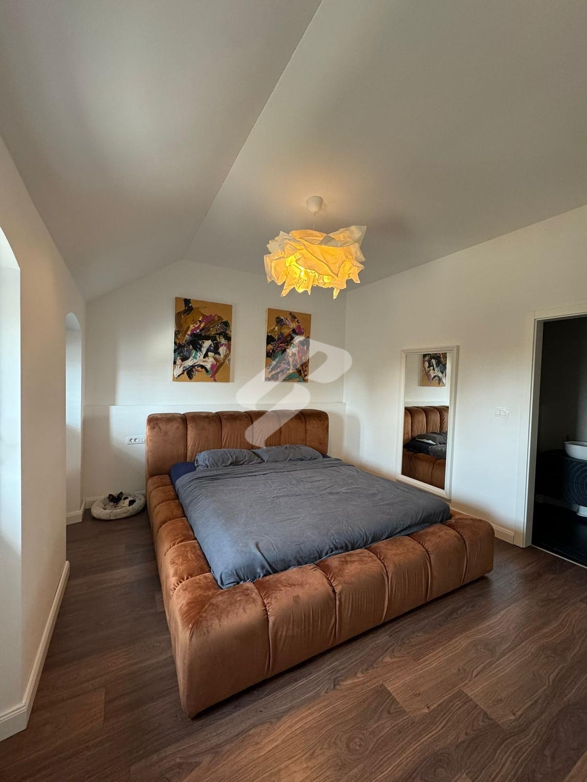 Im Obergeschoss befindet sich der Schlafbereich mit drei Schlafzimmern, wobei das Hauptschlafzimmer mit einem modernen begehbaren Kleiderschrank und einem eigenen Bad ausgestattet ist. Zusätzlich gibt es zwei weitere Schlafzimmer sowie ein Badezimmer im Flur.