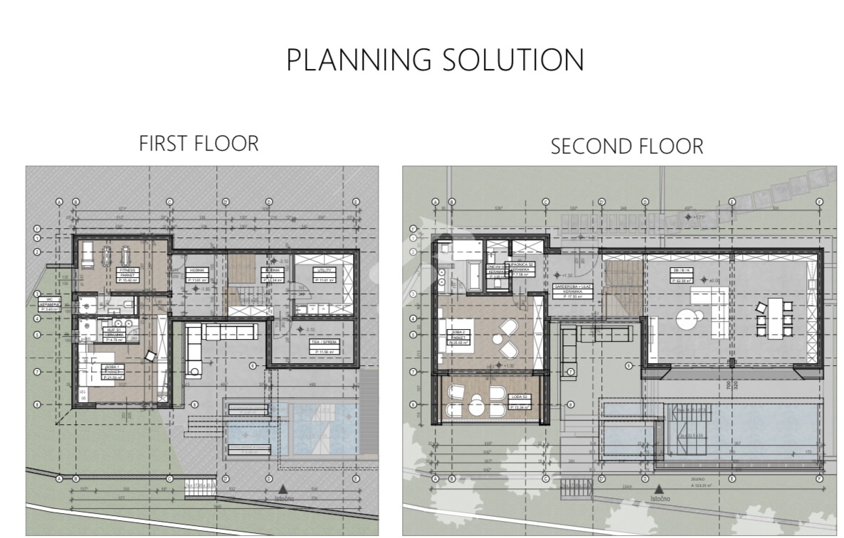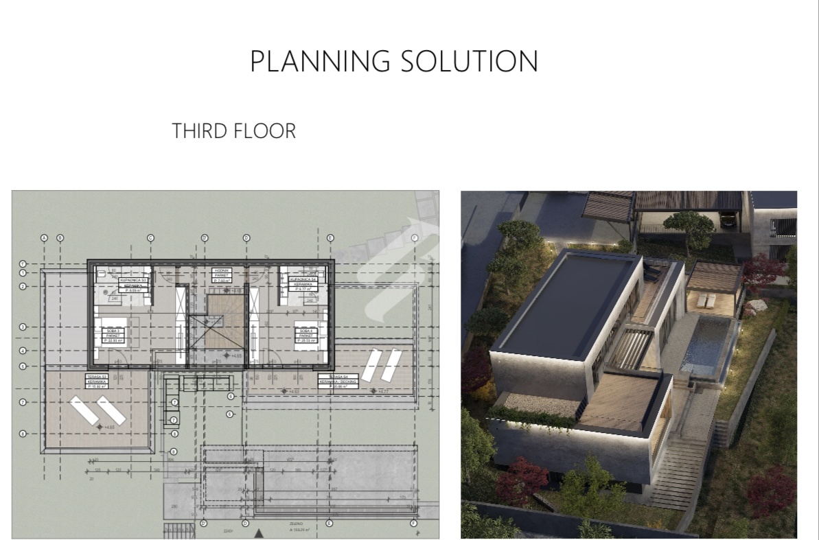 Mit einer Bruttofläche von 348,31 m² erstreckt sich die Villa über drei Etagen und wurde so konzipiert, dass sie maximalen Komfort, Privatsphäre und Funktionalität bietet. Auf einem Grundstück von 921 m² gelegen, bietet sie Raum für einen wahrhaft exklusiven Lebensstil in ruhiger Umgebung, mit eigenem Pool im Garten.