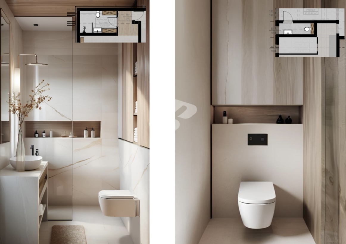 Im Untergeschoss befindet sich ein privater Wellness- und Funktionsbereich, darunter ein Fitnessraum mit 15,42 m² und eigenem Badezimmer. Auf derselben Etage befinden sich außerdem ein Schlafzimmer mit Bad, ein Hauswirtschaftsraum, ein Technikraum sowie ein zusätzlicher Abstellraum, wodurch dieser Teil der Villa optimal für die täglichen Bedürfnisse organisiert ist.