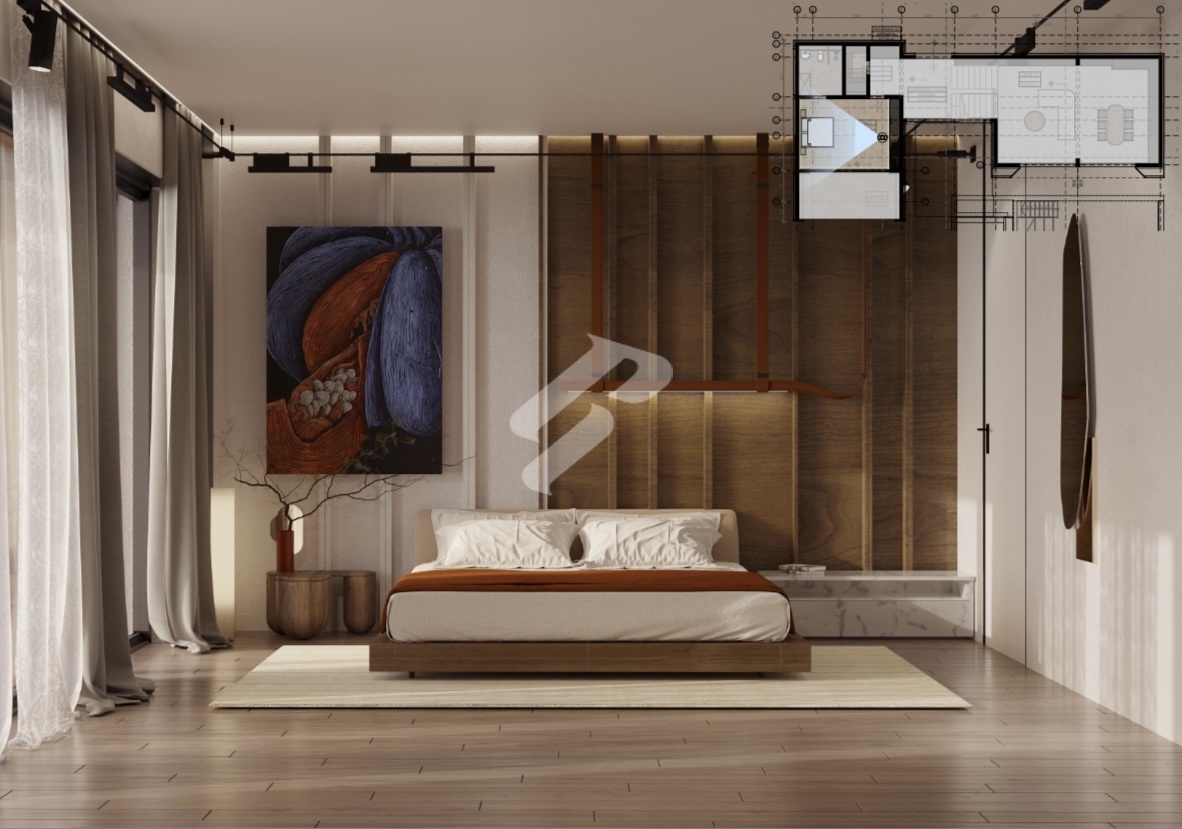 Im Obergeschoss befinden sich zwei elegante Schlafzimmer, jeweils mit eigenem Badezimmer, die vollständige Privatsphäre und luxuriösen Komfort gewährleisten.