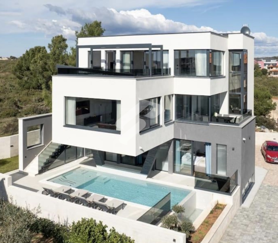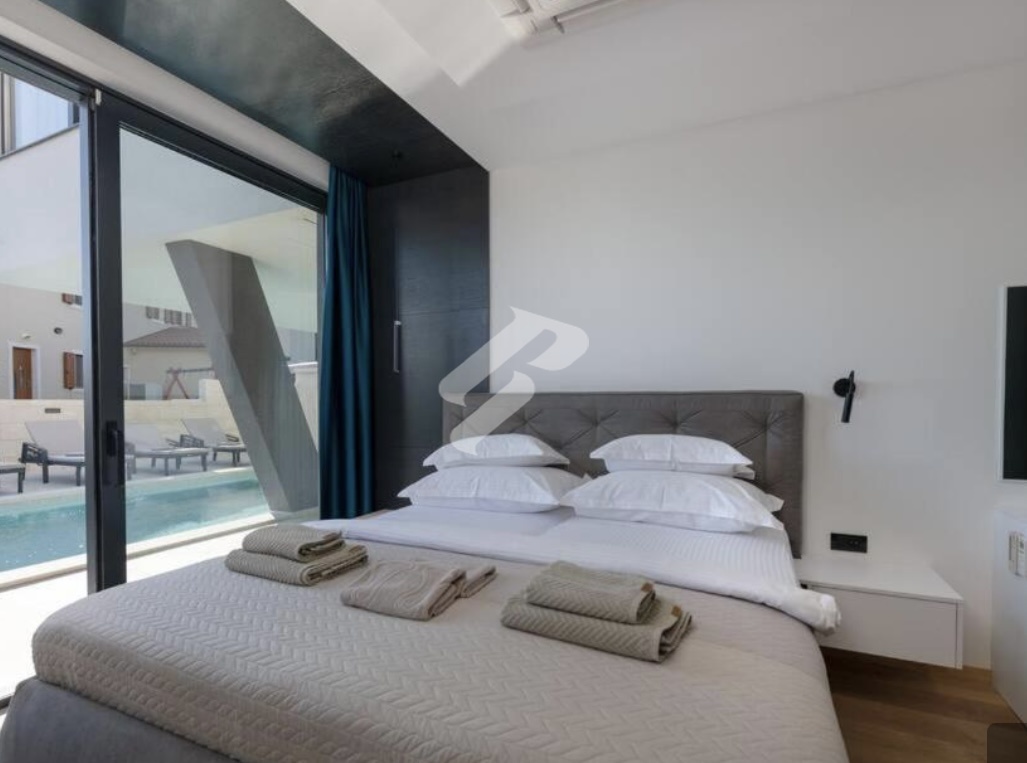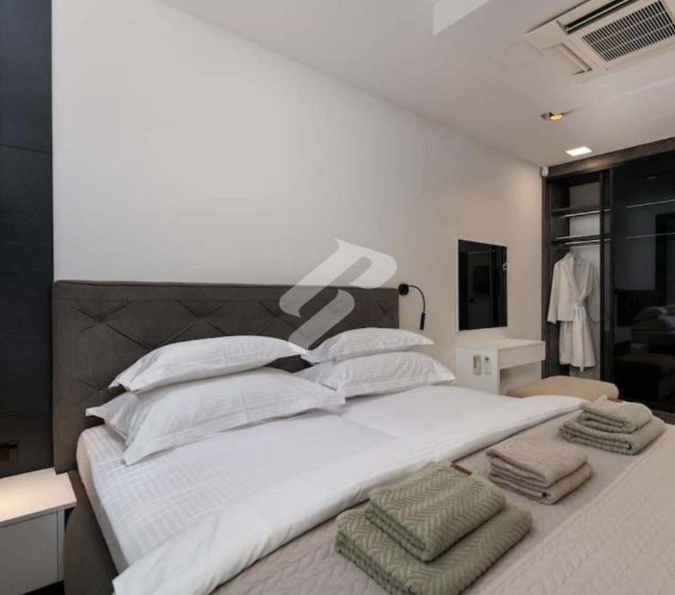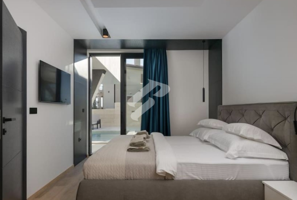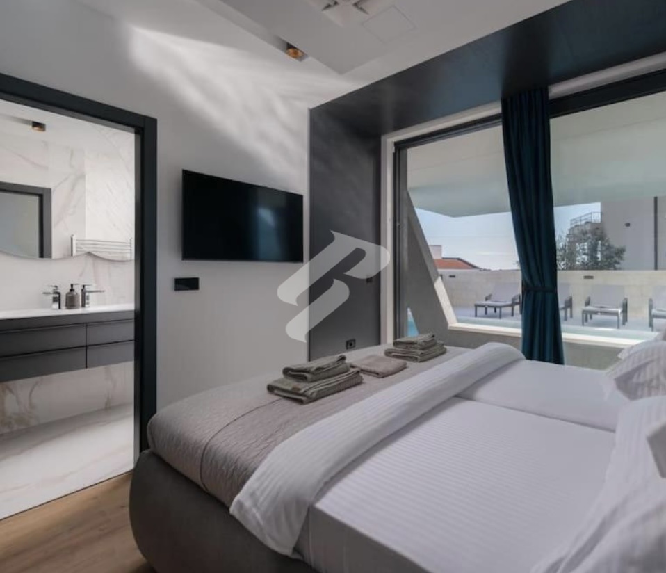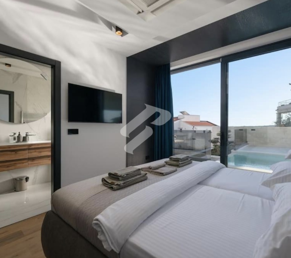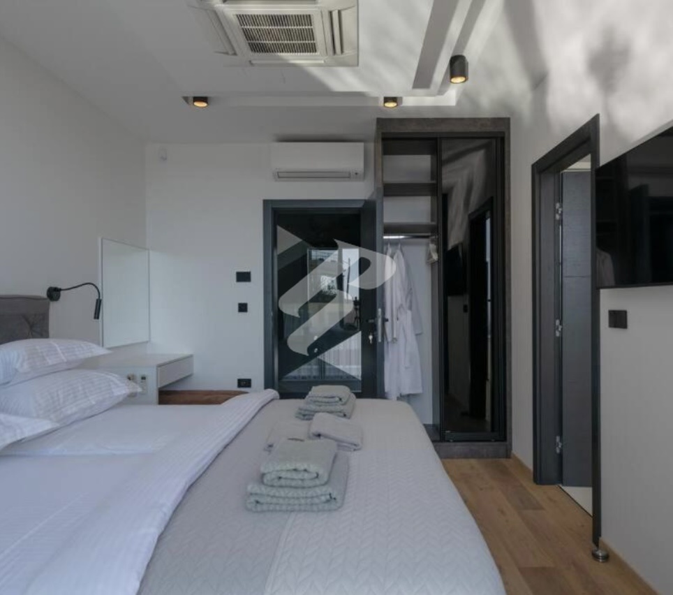 Upstairs is a private sleeping area offering views that stretch from sunrise to sunset, while the top floor unveils a wellness oasis and a rooftop terrace with a breathtaking sea view – a place where the day ends in silence and elegance.