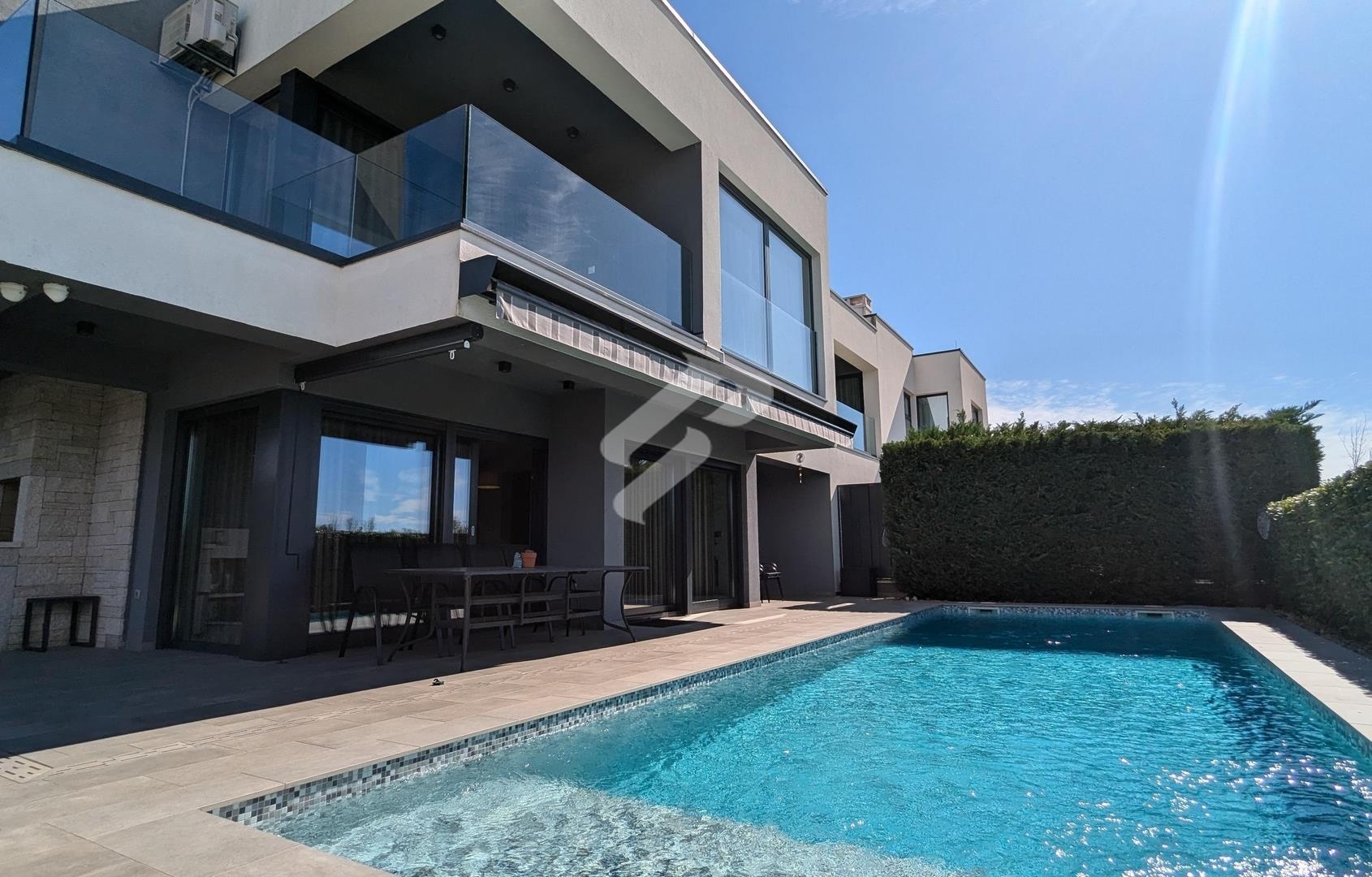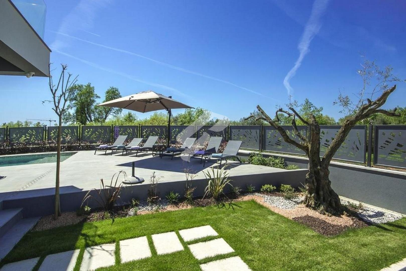 In una delle posizioni più ambite di Poreč, a soli 500 metri dalle prime spiagge attrezzate e a soli 1,4 chilometri dal centro città, si trova questa moderna villa di lusso con vista mare aperta. Con una superficie totale di 250 m², la villa sorge su un terreno di 393 m² e rappresenta la perfetta combinazione di architettura contemporanea, funzionalità e microlocalizzazione di alto livello.