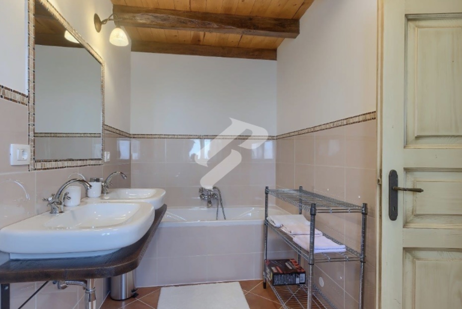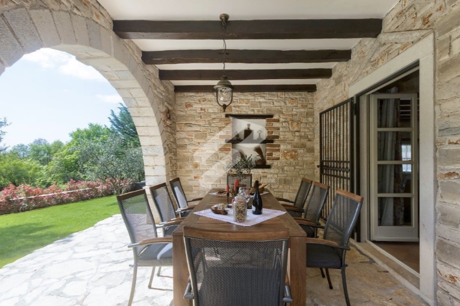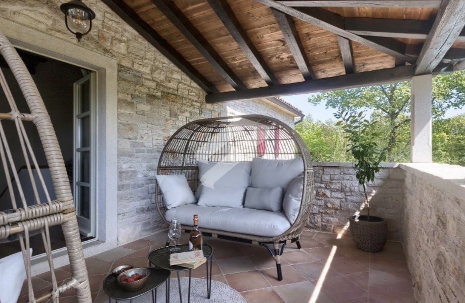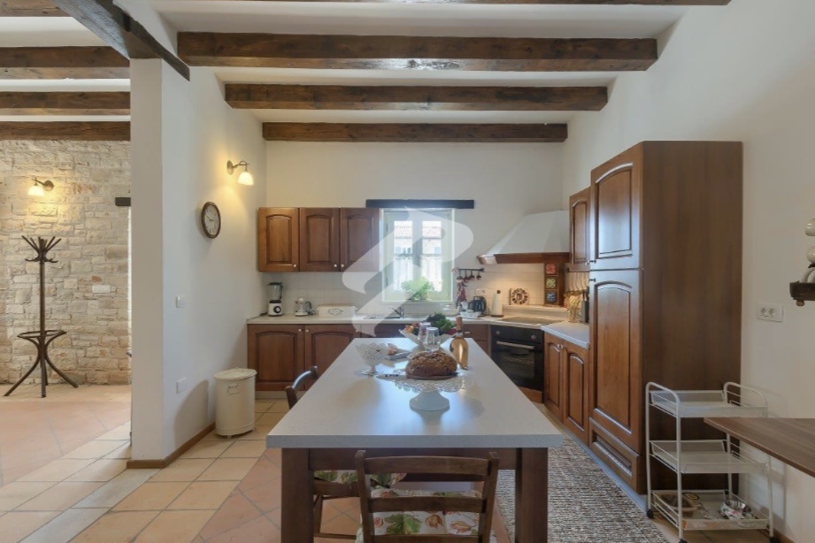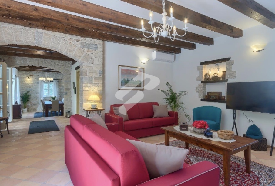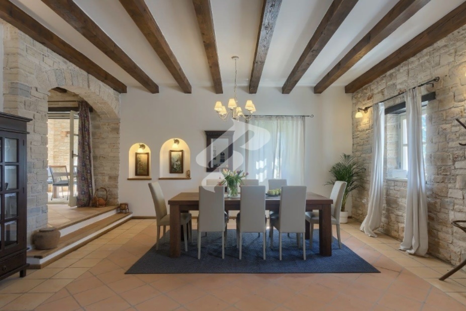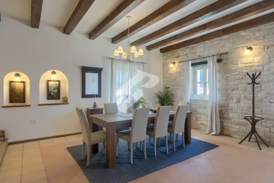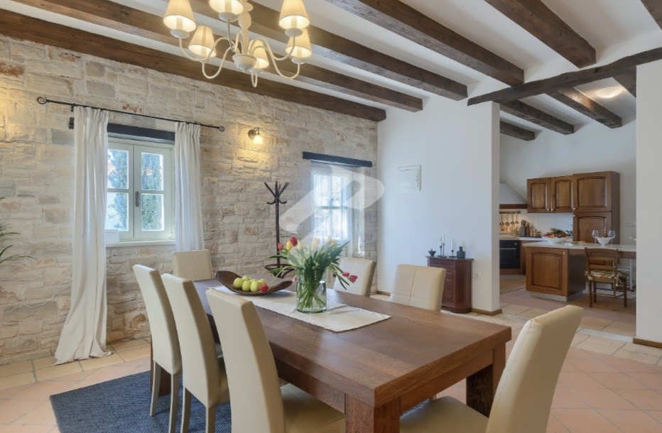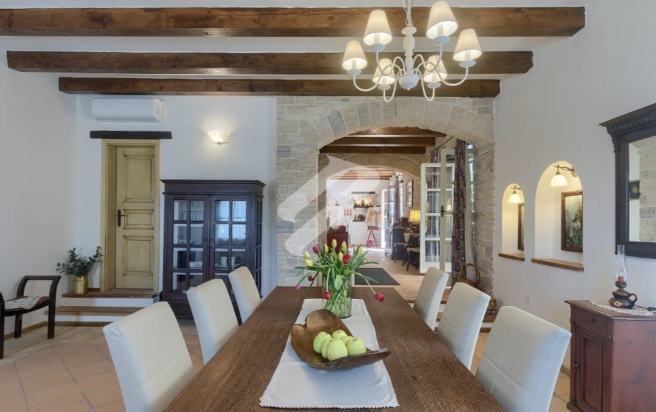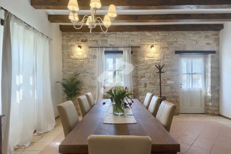 In un tranquillo e affascinante borgo nei pressi di Tinjan, si trova un’elegante villa in pietra che unisce materiali tradizionali e design contemporaneo. Completamente ristrutturata nel 2021, la villa ha ricevuto un aggiornamento moderno, compreso il riscaldamento a pavimento in tutto il piano terra, che permette di viverla tutto l’anno e offre condizioni ideali per affitti annuali. La villa è attualmente classificata quattro stelle per sette persone con due letti aggiuntivi ed è preparata per otto persone con attrezzature complete per tutti gli ospiti, inclusi letti, sedie e tutti i servizi necessari. Su richiesta, può essere classificata anche come cinque stelle.