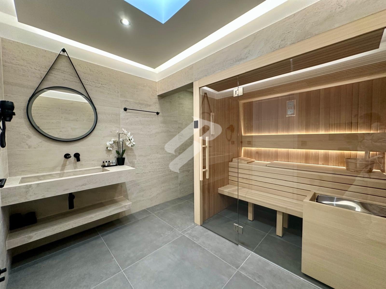 Ova pažljivo osmišljena kuća nudi savršenu ravnotežu između estetike i funkcionalnosti. Sastoji se od tri prostrane spavaće sobe i tri moderno uređene kupaonice, pružajući maksimalnu udobnost za obitelj ili goste. Dodatni osjećaj luksuza donosi vlastita sauna – idealno mjesto za opuštanje tijekom cijele godine.