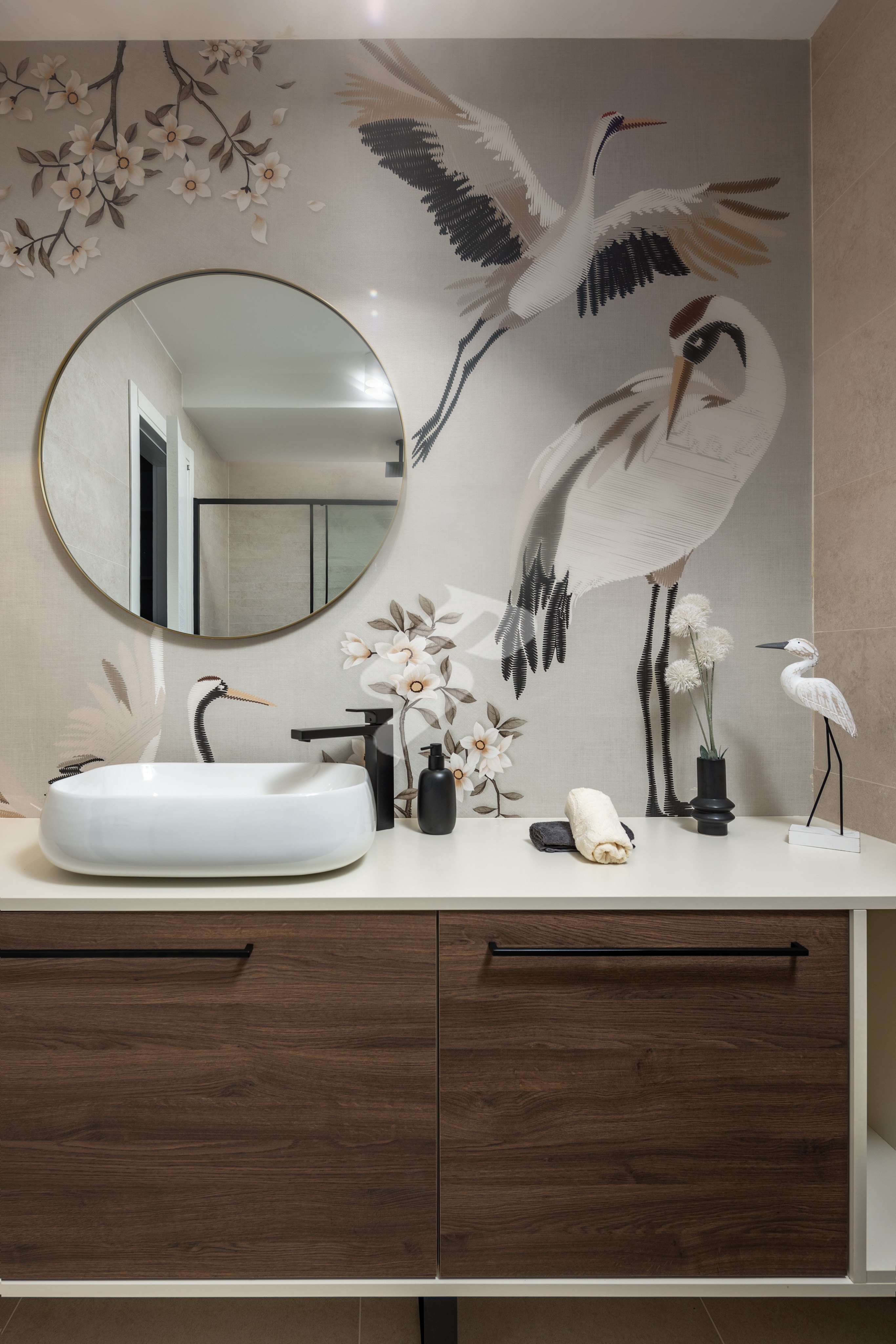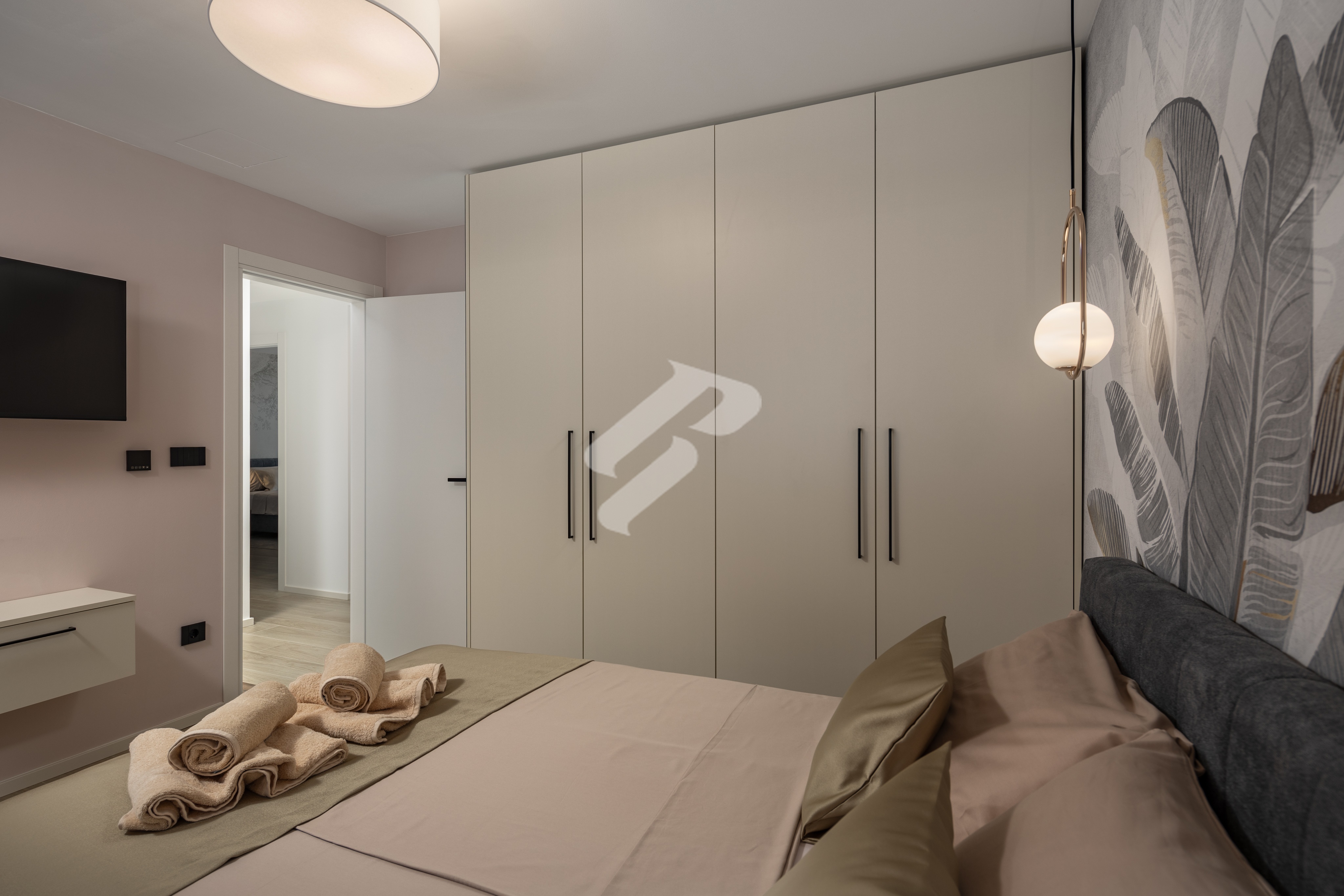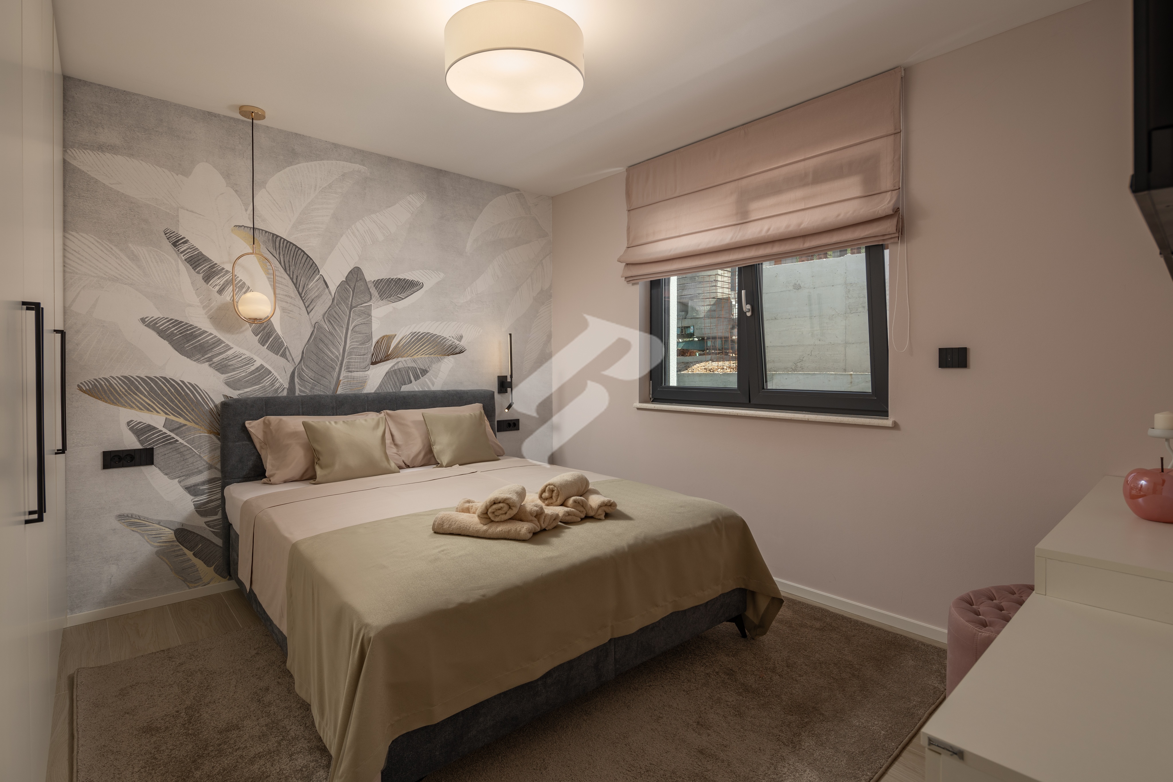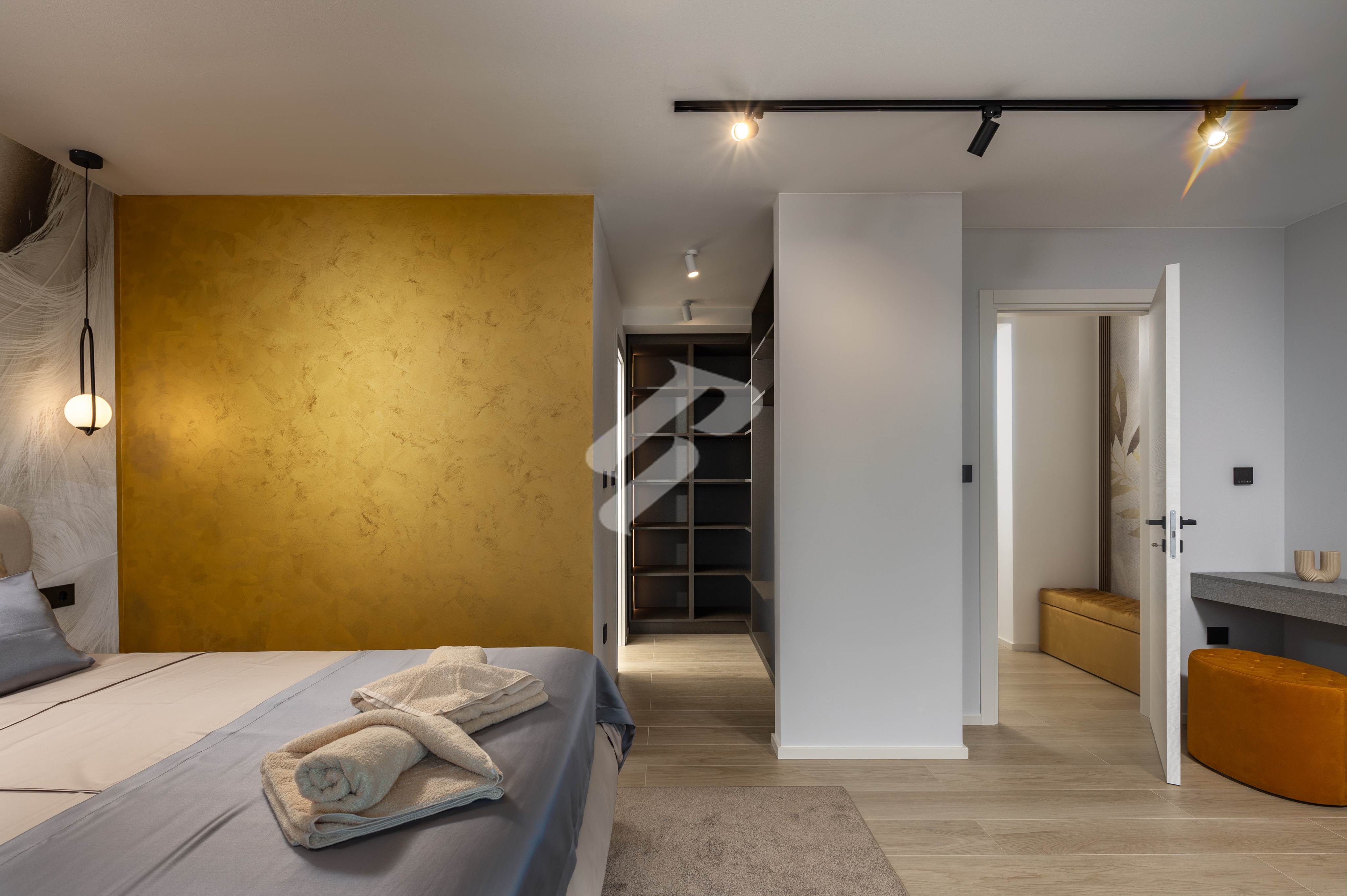 Na prvom katu smještene su tri spavaće sobe, uključujući master suite s privatnim luksuznim kupatilom. Preostale dvije sobe koriste dodatnu kupaonicu smještenu na hodniku. Pažljivo odabrani materijali i obilje prirodnog svjetla stvaraju osjećaj elegancije i mira.