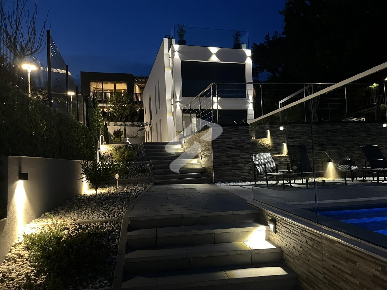 Na jednoj od najpoželjnijih adresa hrvatske obale, u mirnom i elitnom dijelu Kostrene, nalazi se suvremena mediteranska vila smještena svega nekoliko koraka od mora. Okružena zaštićenim zelenim pojasom u kojem više nije dopuštena gradnja, ova rezidencija uživa potpunu privatnost i otvoren pogled na more koji ostaje trajna vrijednost. Imanje obuhvaća parcelu površine 1.060 m² na kojoj se skladno spajaju elegantno uređene kamene površine i mediteransko bilje održavano automatiziranim sustavom navodnjavanja.