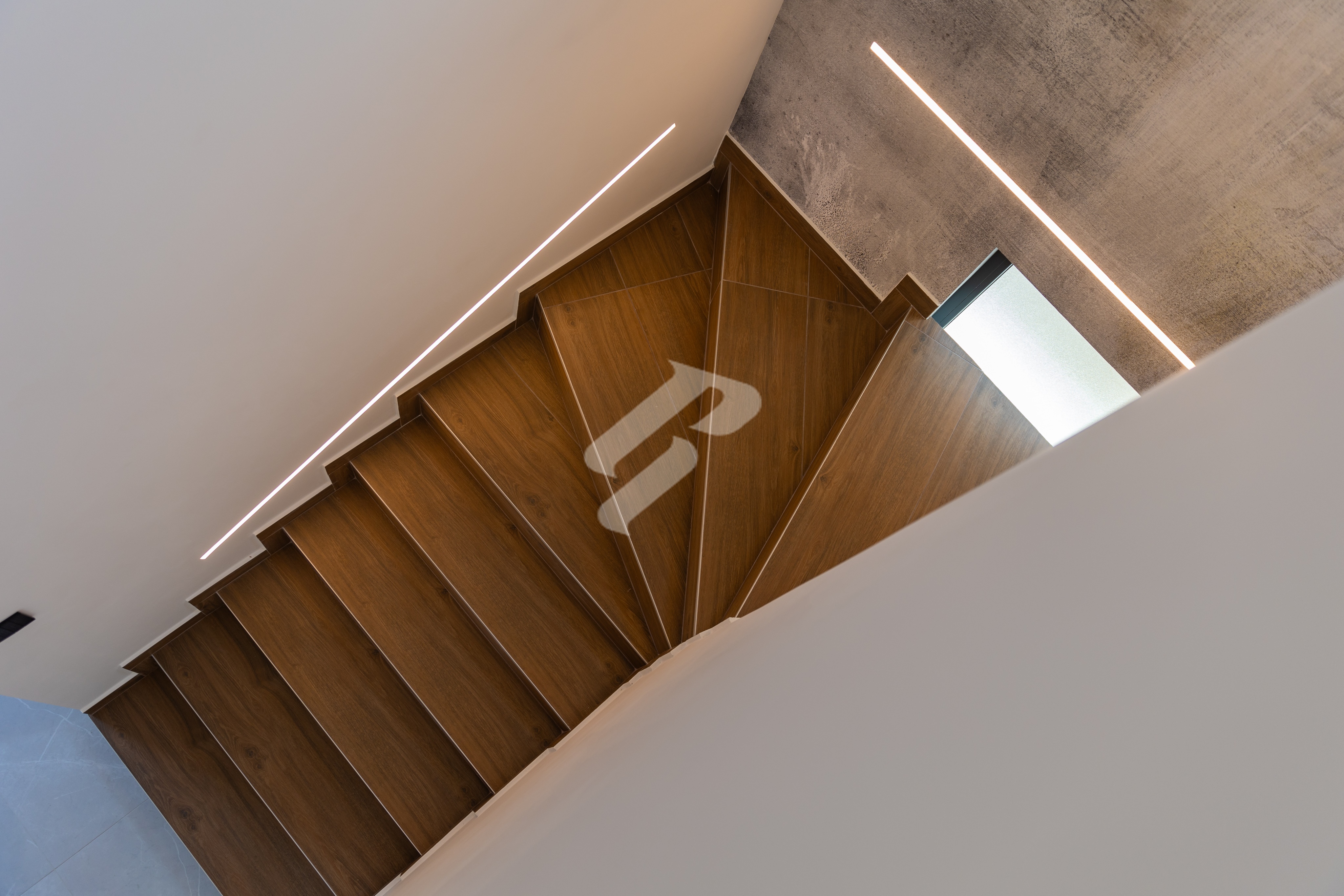 Ova moderna rezidencija savršeno spaja sofisticirani dizajn, funkcionalnost i vrhunski komfor. Svaki detalj je pažljivo osmišljen, od elegantnog unutarnjeg stubišta koje povezuje sve etaže, do prostranih, svijetlih soba koje pozivaju na opuštanje.