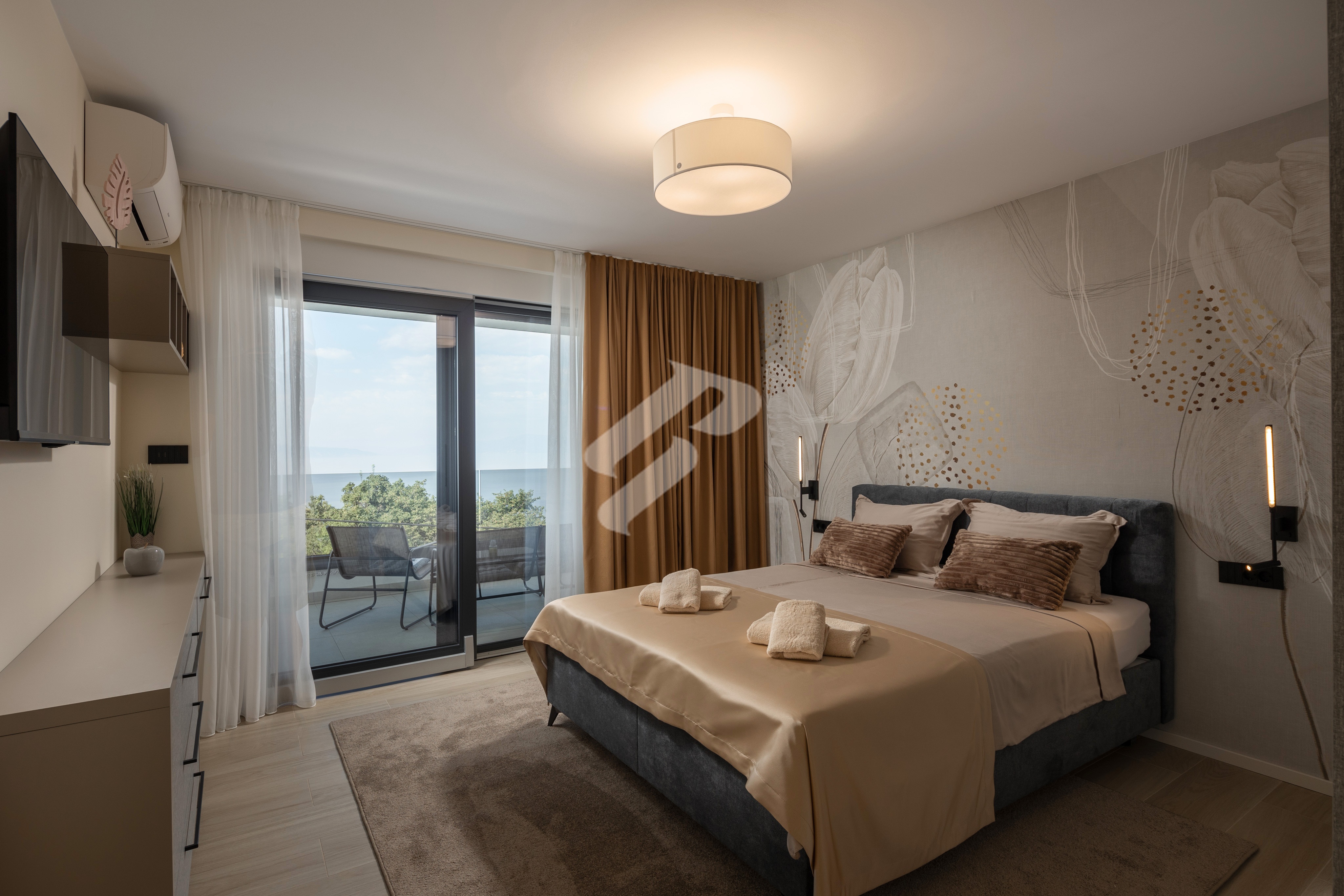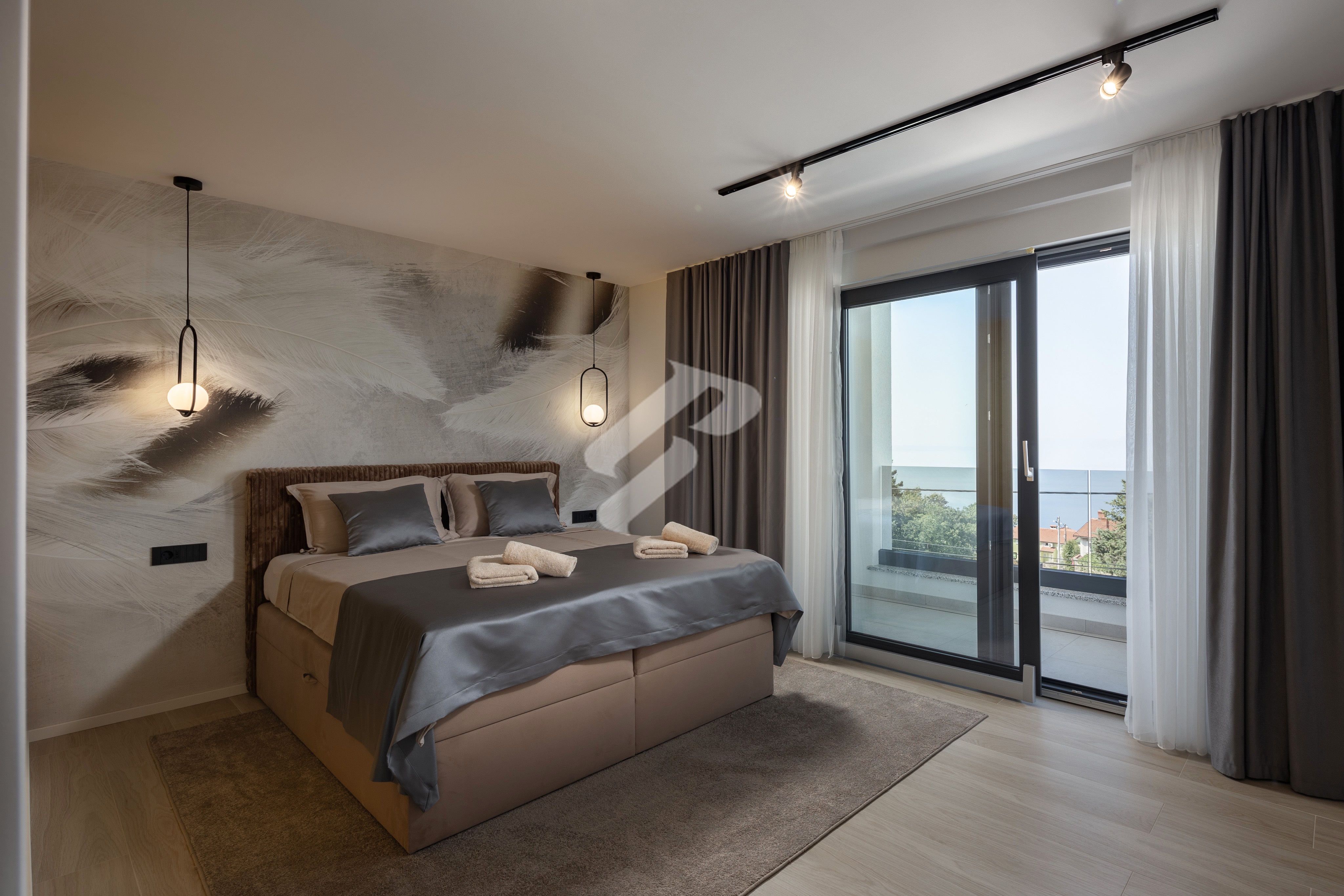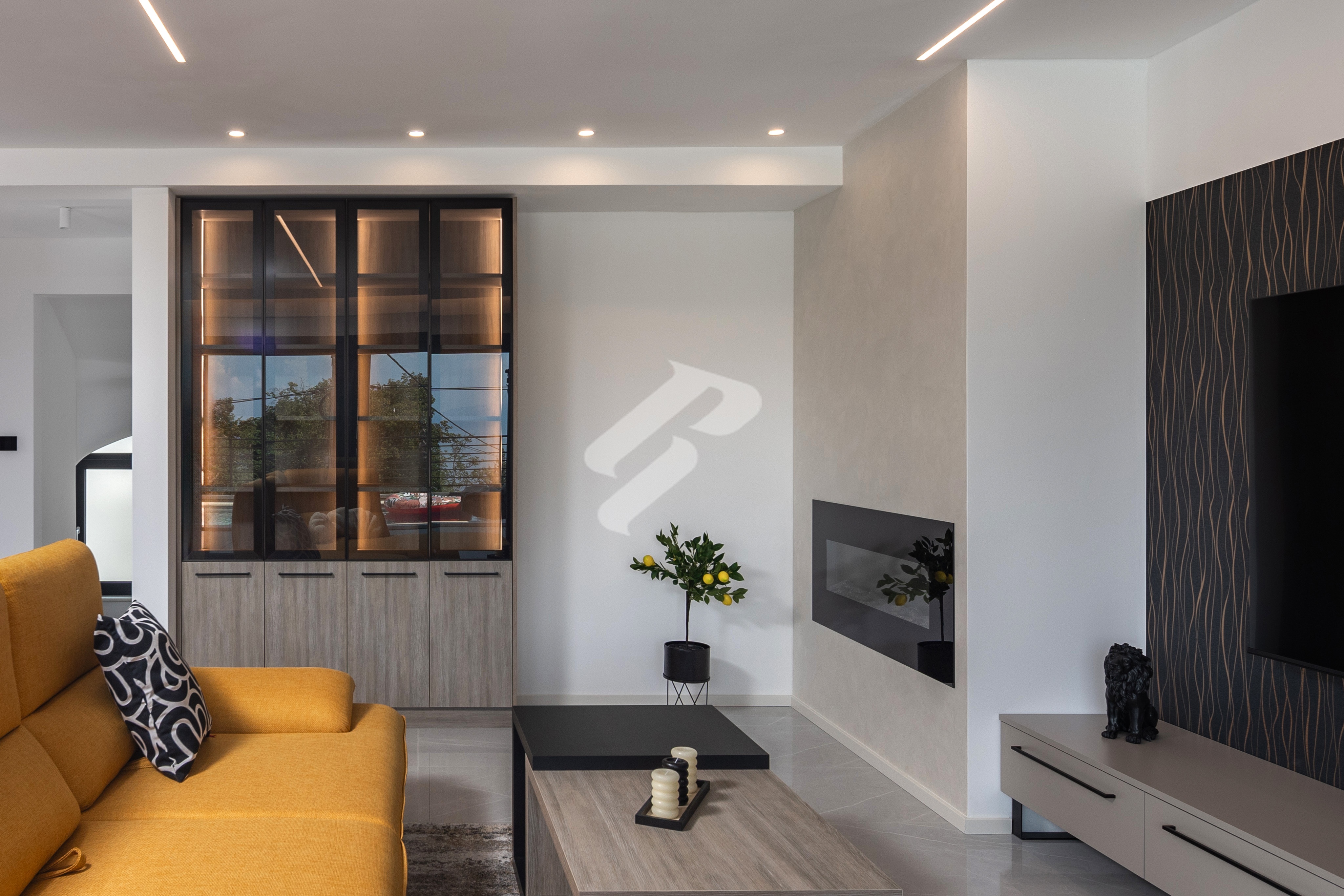 Luksuzna dvojna kuća, u opisu zapadna polovica, izgrađena 2024. godine, smještena je u prestižnoj i mirnoj zoni Kostrene, s pogledom na more.