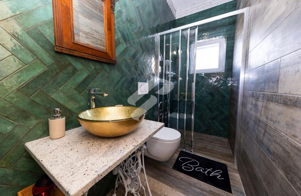 Poseban ugođaj daju ukupno tri kamina — dva unutarnja i jedan vanjski. Terasa se prirodno nadovezuju na uređenu okućnicu površine 360 m², gdje se nalazi bazen kao idealno mjesto za uživanje u toplim ljetnim danima.