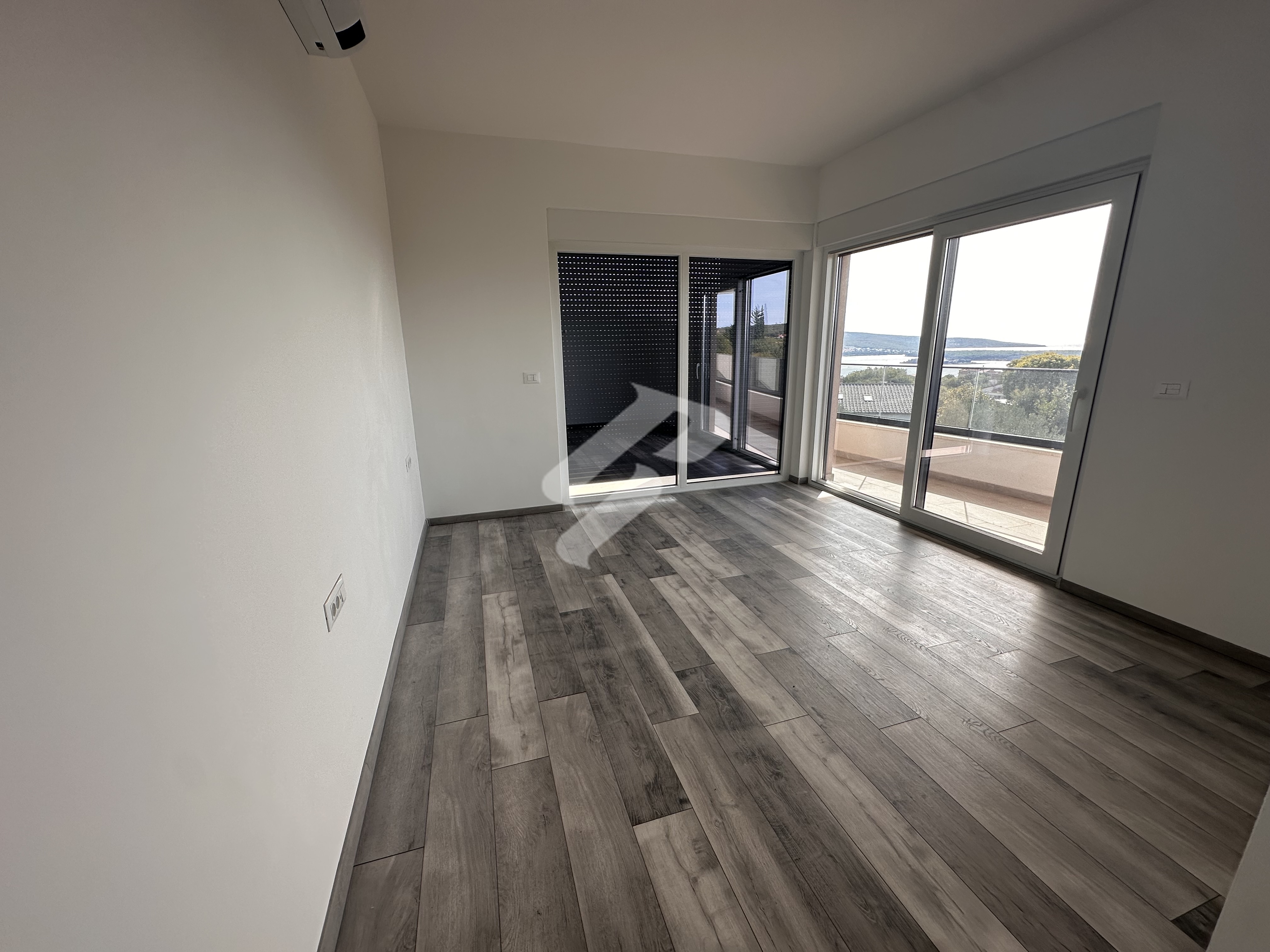 Na katu se nalaze tri prostrane spavaće sobe, svaka s vlastitom kupaonicom i izlazom na natkrivenu terasu s pogledom na more, uz praktičan utility prostor. Okućnica nudi i parking prostor te punionicu za električna vozila.