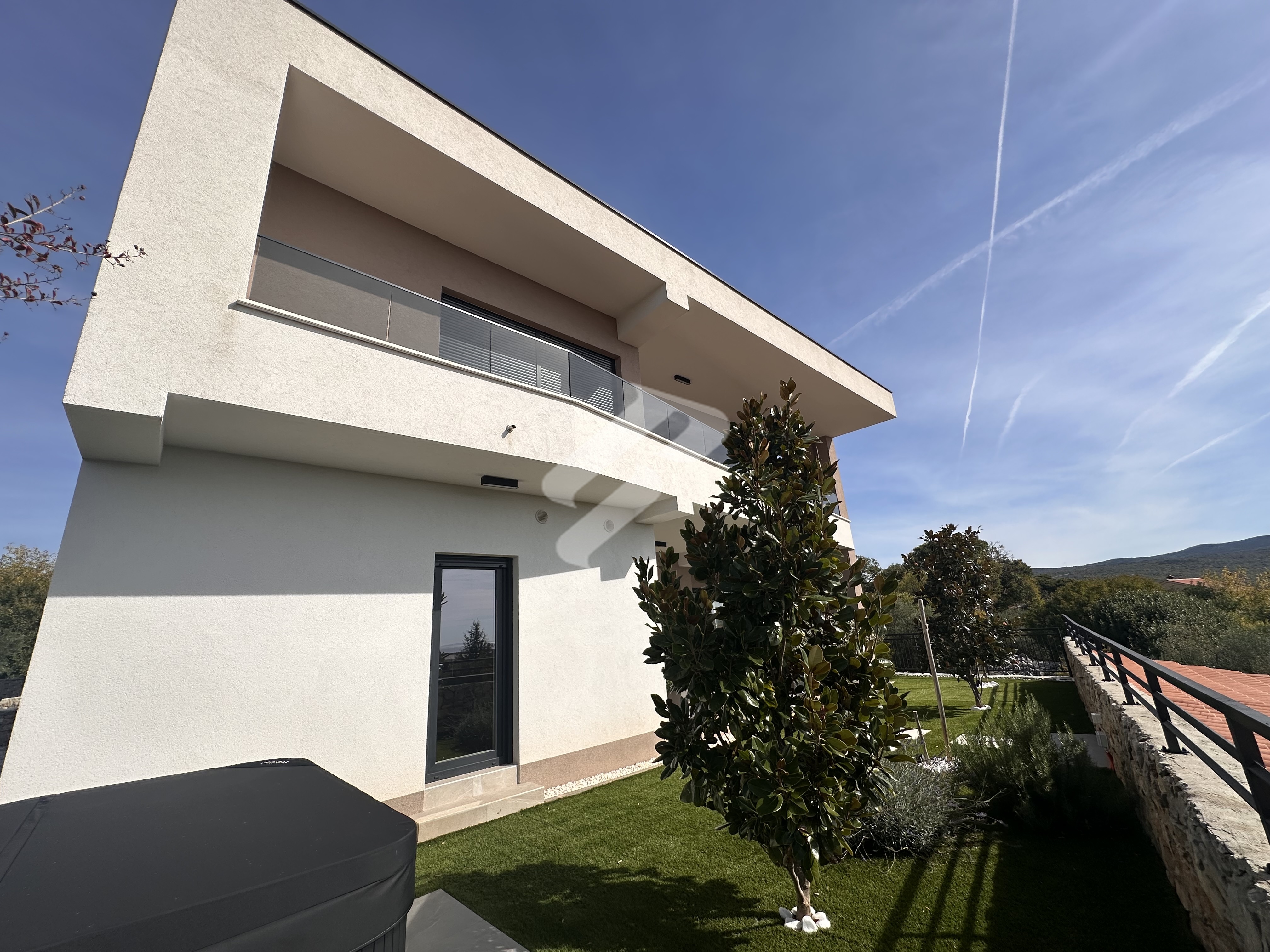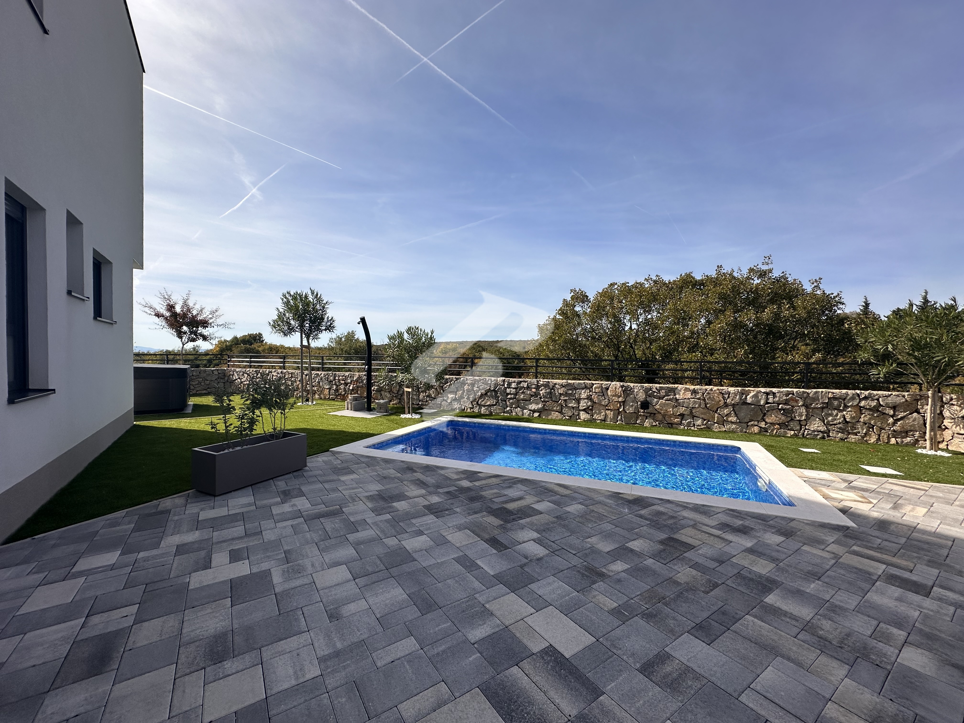 Na jednoj od najpoželjnijih lokacija u Korniću, u neposrednoj blizini grada Krka, smještena je ova samostojeća moderna kuća koja spaja luksuz i funkcionalnost. Prostire se na 200 m² stambenog prostora raspoređenog na dvije etaže, a okućnica od 611 m² pruža privatnost i dovoljno prostora za uživanje u mediteranskom ambijentu.