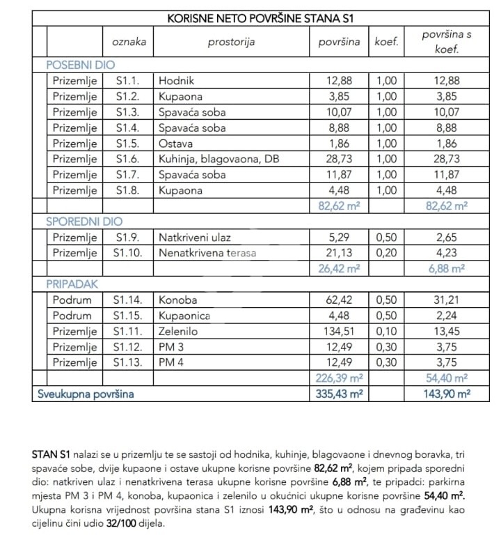 Apartmanu pripada prostrana konoba u suterenu, koja zbog svoje veličine nudi mogućnost uređenja dodatnog stambenog prostora, wellness zone ili prostora za druženje prema vlastitim željama. Osigurana su i dva parkirna mjesta.