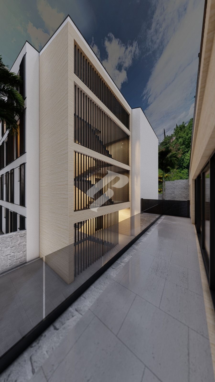 Prodaje se prostran stan u visokom potkrovlju moderne novogradnje, smještene samo 70 metara od plaže. Zgrada je projektirana s dva ulaza, svaki sa po četiri stana, što pruža osjećaj privatnosti i mira.
