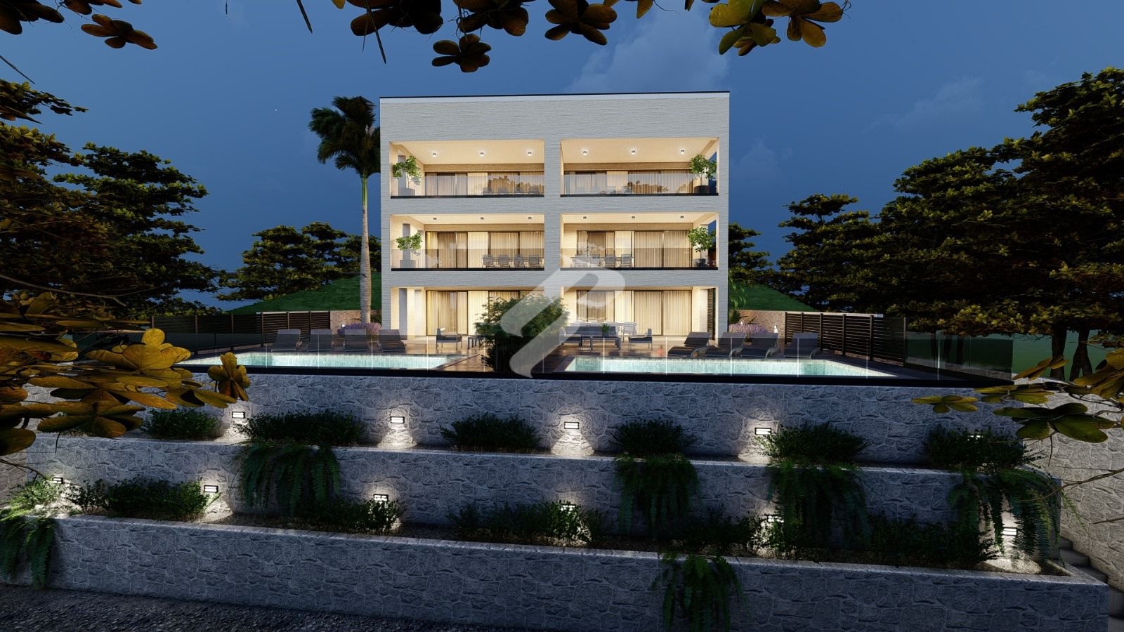 Na prestižnoj lokaciji, samo 70 metara od plaže, prodaje se stan u modernoj novogradnji s planiranim početkom gradnje u studenom 2025. godine i završetkom 2027. godine. Zgrada ima dva ulaza, a svaki ulaz obuhvaća po četiri stana, što osigurava privatnost i mir za stanare.