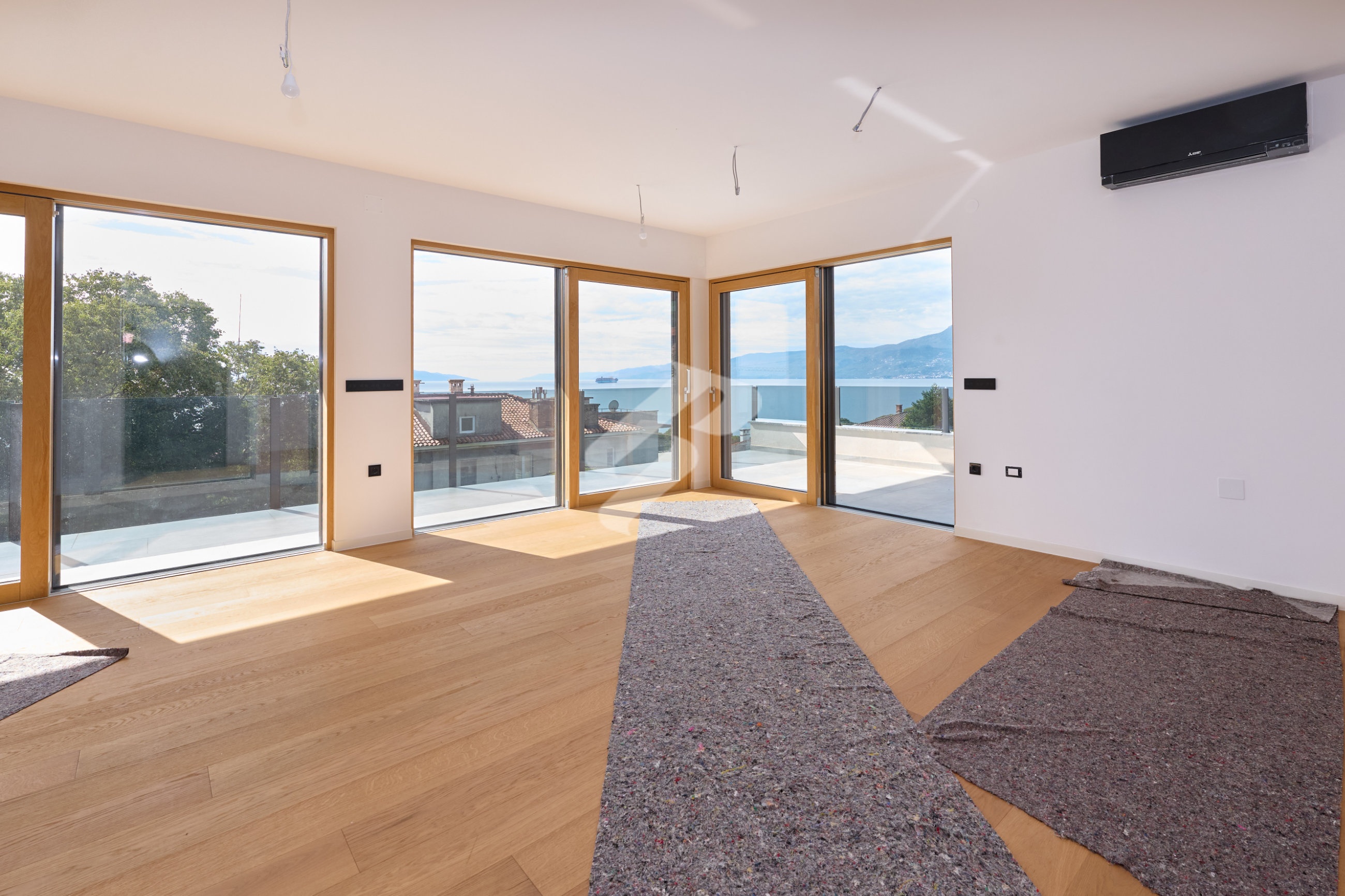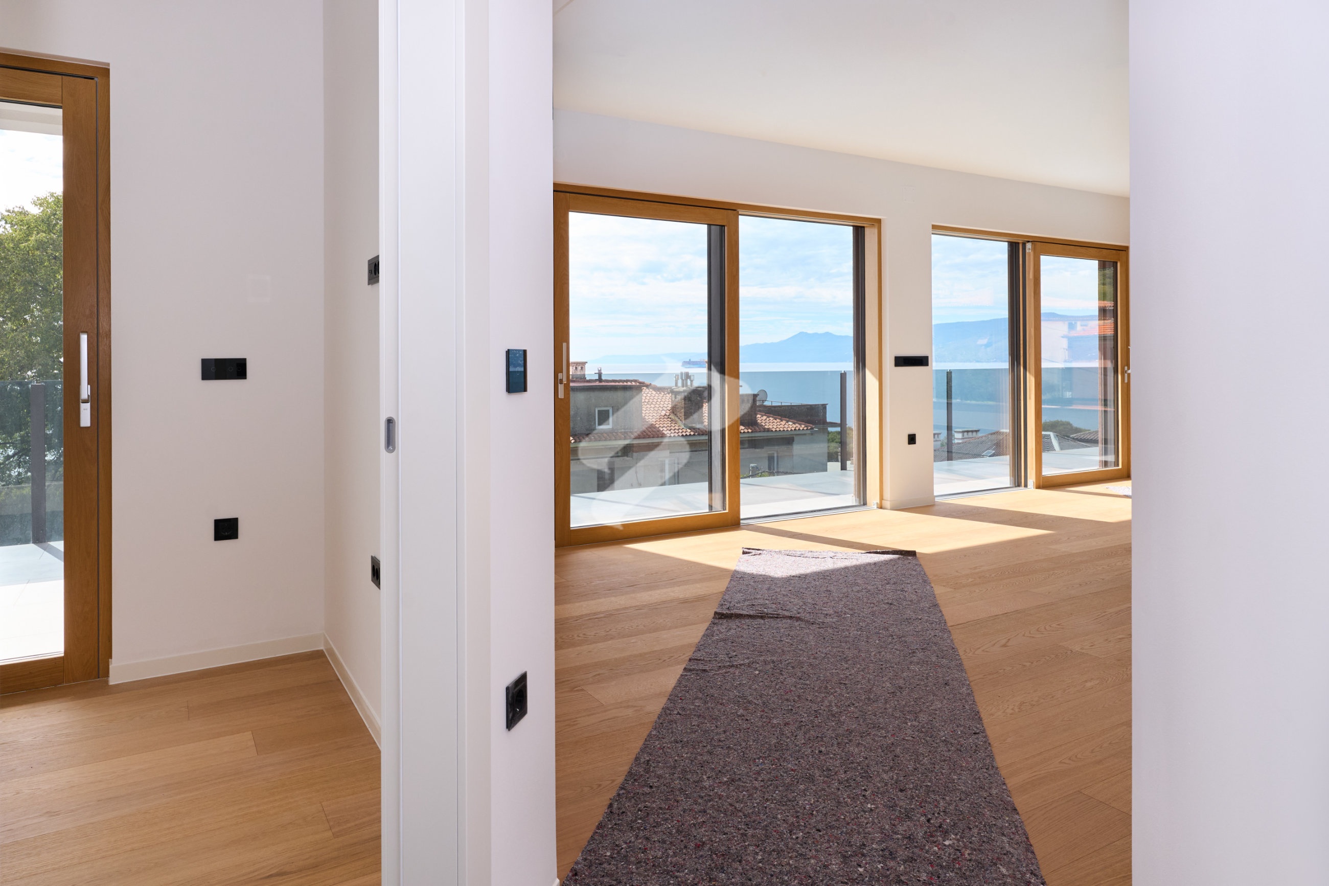 U interijeru dominiraju hrastov parket, keramika talijanskih proizvođača te sanitarije Laufen i Geberit, dok aluminijsko-drvena stolarija s troslojnim staklima jamči izvrsnu toplinsku i zvučnu izolaciju.