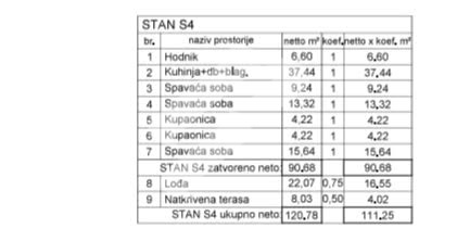 Stan nudi tri komforne spavaće sobe (9,24 m², 13,32 m² i 15,64 m²), funkcionalan hodnik (6,60 m²) , terasa (22,07 m²) te natkrivena terasa (8,03 m²), koje stvaraju jedinstven doživljaj luksuza i pružaju otvoren, panoramski pogled – savršen za uživanje i privatnost.
