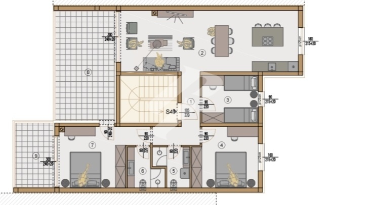 Ova luksuzna nekretnina površine 120,78 m² predstavlja savršen spoj suvremene arhitekture, komfora i prestiža. Dominantan open space dnevni prostor od 37,44 m² (kuhinja, blagovaonica i dnevni boravak) odiše elegancijom i prozračnošću, uz obilje prirodnog svjetla.