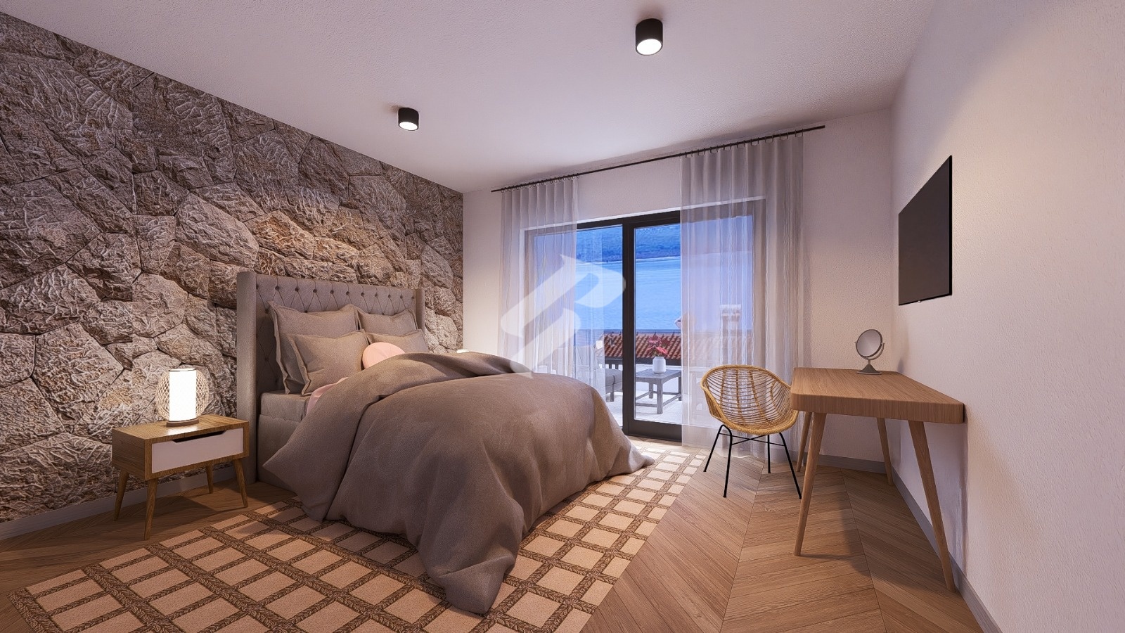 Stan se sastoji od tri komforne spavaće sobe, dvije elegantne kupaonice te kuhinje s blagovaonicom i prostranim dnevnim boravkom koji vodi na terasu s koje se otvara panoramski pogled na more.
