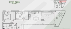 U nastavku predstavljamo stan S205 smješten na drugom katu zgrade. Riječ je o dvosobnom stanu s dnevnim boravkom, ukupne površine 63,06 m², idealnom za ugodan i kvalitetan životni prostor.