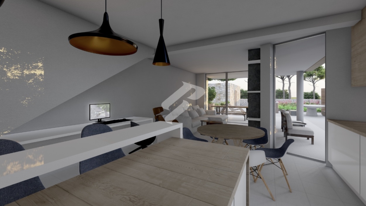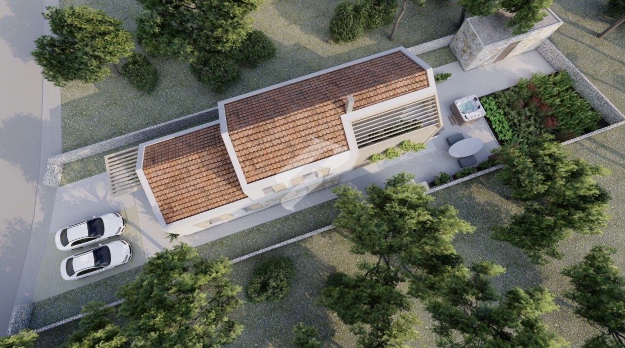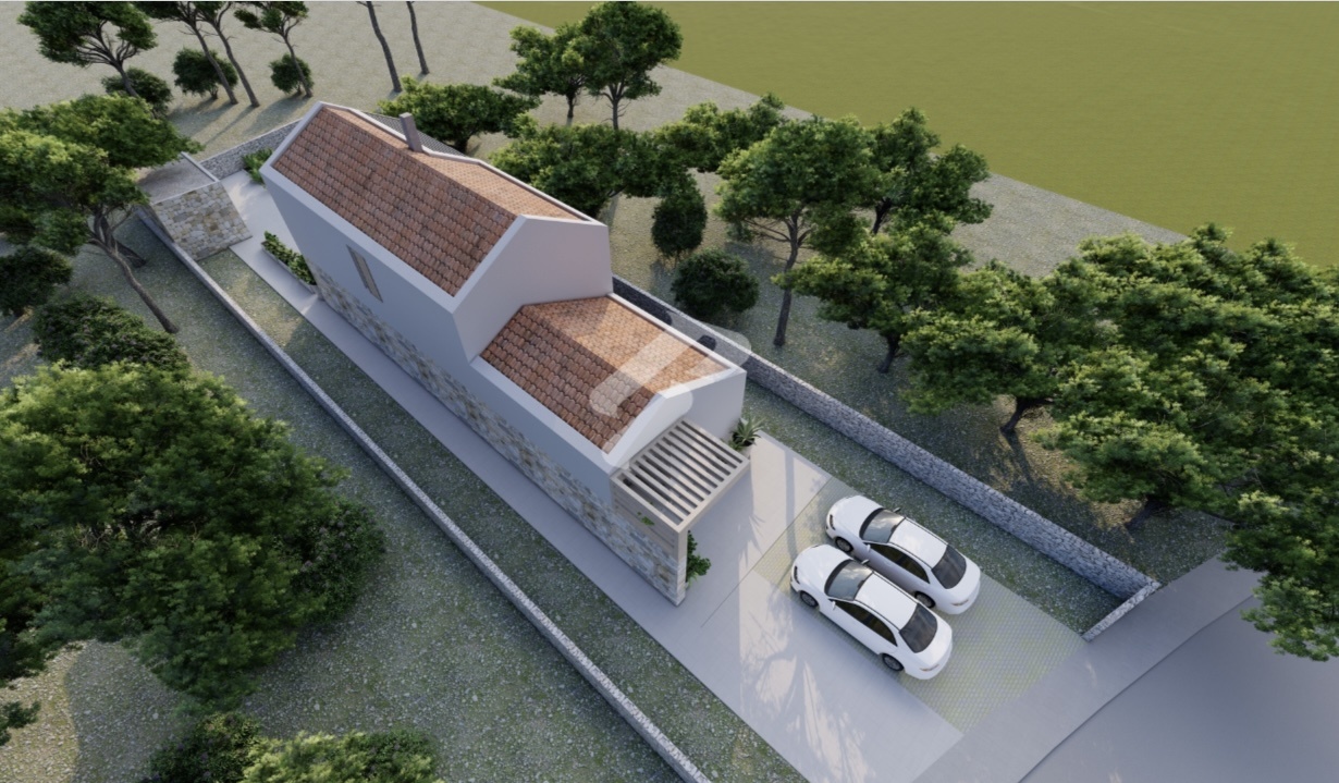 Na parceli se već nalazi građevinska dozvola za obiteljsku samostojeću kuću s jednom stambenom jedinicom na dvije etaže (prizemlje i kat), dimenzija 21,91 x 6 m. Uz to je predviđena i pomoćna konoba od 6,65 x 3,05 m.